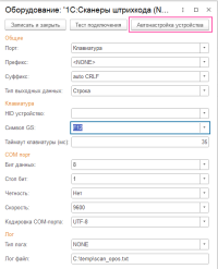 1. Кнопку : "Автонастройка" -нажимал, сканировал, вообще никак не реагирует система (т.е. ШК считывается , но в 1с ничего не происходит).