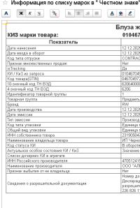 Иногда - не показывает марку совсем. Если Товарная группа не доступна у участника оборота чья КЭП, чаще всего причина... Но, это уже нужно конкретно смотреть. "Свои" марки покажет точно, насчет "чужих" - бывают нюансы... Но, это уже от нас не зависит, это особенности ЧЗ.