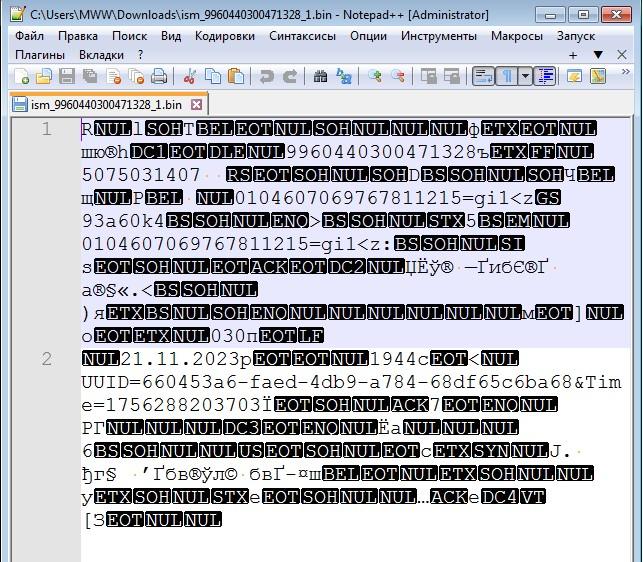 Вот, как выглядит уведомление в TLV, и изменение кодировки в Notepad++ тут не помогает, все равно остается не читаемым, как-то хитро закодировано: ![]() |