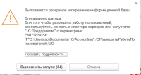 (0) а оно случаем не меняет флажок "Блокировка работы пользователей" в настройке базы? тогда все логично - всем пользователям заблокирована работа, в том числе созданию бекапа...