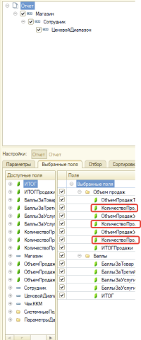 Почему не выводятся колонки в отчете СКД?